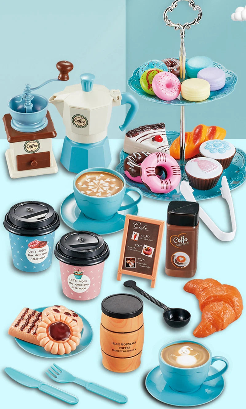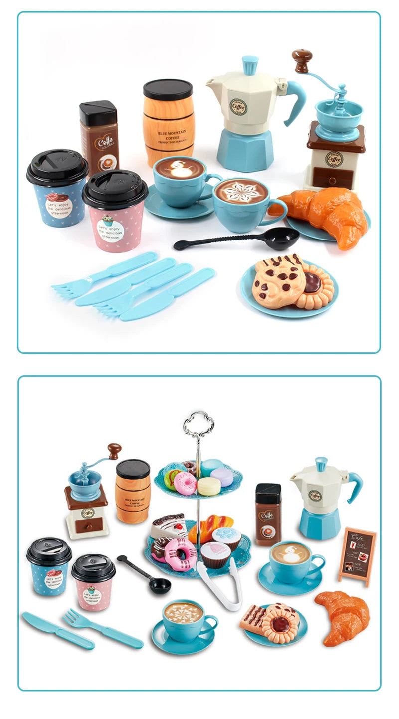 Kids Simulation Afternoon Tea Toys Set DIY Pretend Play Kitchen Toys Food Coffee Machine Dessert Play House Toys For Girls Kids